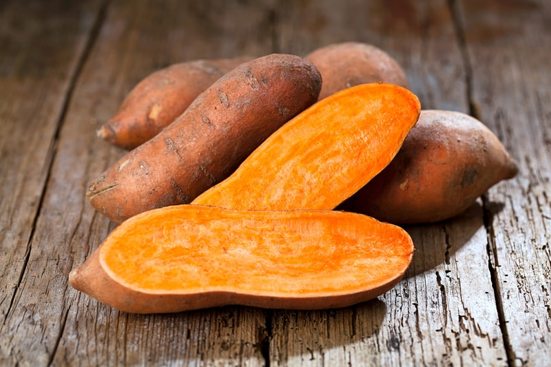 Sweet potatoes (Ipomoea batatas) or tubers are often called yams in the U.S., although the true yams from Africa and Asia are different in colour and starchier. They are native to the Americas and typically orange-skinned. But they can also be white, red, or purple. They provided a vital food source for the Maya, Aztecs, and Inca peoples. Peruvian archaeological evidence indicates that they were consumed as early as 8000 BC.