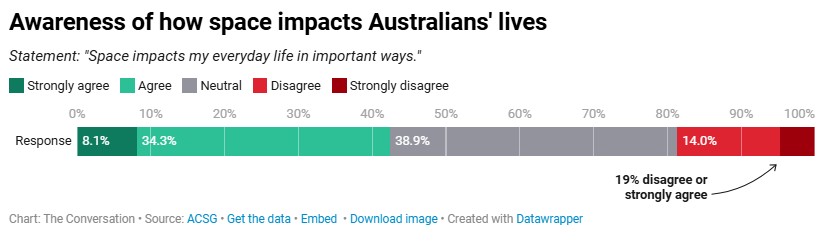 This was despite Australians appreciating the importance of space, with only 19% saying that space has little impact on their lives.