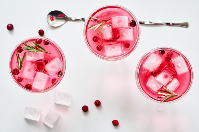 - Fill the glass with ice cubes and garnish with cranberries and mint leaves.