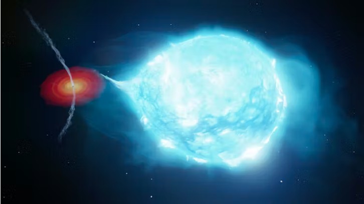 For about 20,000 years, the black hole has been feeding on material from this star. It does so by capturing the star’s powerful stellar wind, using its intense gravitational pull.